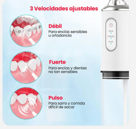 Varios modos/fuerza de agua para adaptar a sensibilidad dental.
