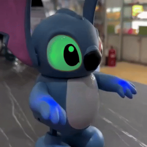 Conoce al Stitch Bailarín, la figura más tierna del momento.Solo enciéndelo y mira cómo baila alegremente mientras sus luces de colores iluminan el ambiente.